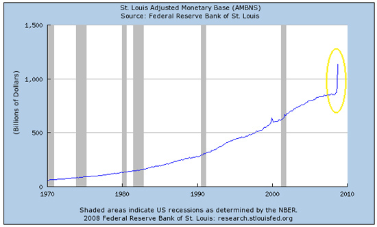UPDATE on January 13, 2011 Investor’s Business Daily posted an editorial “Has Fed Lit Inflation Fuse?” with further information on this topic and a reference to the growth in the adjusted monetary base per the following chart; and on January 17, 2011 the Wall Street Journal reported that China’s President predicted the end of the current monetary system.