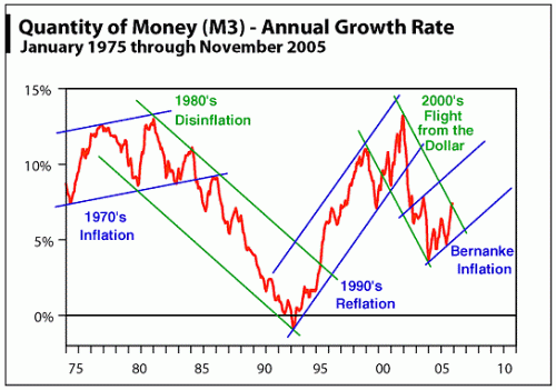 Such a breakdown is consistent with the last two secular bear markets. The Great Depression saw the world actually break into distinct trading and currency blocks as the global monetary system crumbled. Then in the seventies the Bretton Woods system ended as the U.S. was forced to abandon the gold standard. The new system that arose was nicknamed Bretton Woods II, and today having helped fuel today’s asset bubble it has sown the seeds of its own destruction. Under Bretton Woods II the U.S. dollar remained the currency of global trade only instead of being backed by trade surpluses and gold it was supported by foreign purchases of debt that funded trade deficits.