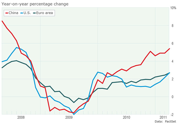 Yet, China is resistant to letting its currency strengthen lest its exports become less competitive and workers lose their jobs. The fact is that neither country will be able to hold its part of the center together, and the United States is already not purchasing enough Chinese goods to sustain strong job creation in that country. In China job growth is now centered around its own real estate bubble and unsustainable investments in unnecessary infrastructure and production capacity. But even these investments aren’t enough to soak up all the excess liquidity and consumer inflation is also rising here as it is in the rest of the world and China is no longer a deflationary counter to inflationary forces.
