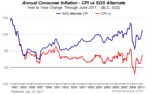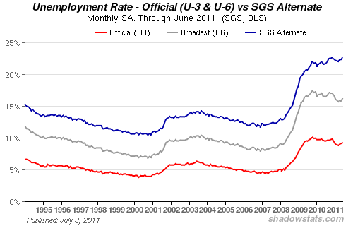 The weaker than expected growth was linked to weak consumer spending that some economists blamed on inflation in the form of rising food and energy prices, as May experienced gasoline prices reaching about $4 a gallon. This comes on top of an also weak employment environment with the unemployment rate rising to 9.2 percent in June. Unfortunately, government GDP, inflation and unemployment statistics paint a rosier picture than reality.