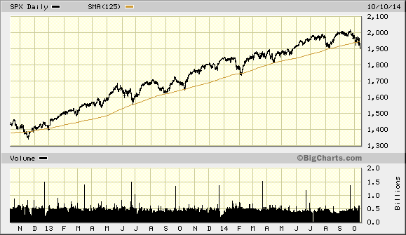 Risks around stocks have risen considerably, and even long term investors should now substantially underweight equity exposure. Due to the unique characteristics of this stock market, my best advice is to now treat it as if in the onset of a bear market, regardless of near term price action. At this point in 2014 many warning signs are flashing red—the bond market is signaling weakening growth and greater risk of default, while stock market breadth has deteriorated with many stocks, including small cap and foreign indices, exhibiting extended weakness, while fewer, very large stocks were supporting the market until the recent sell off. The risk versus reward of stock exposure has become too high for an even normal stock allocation, let alone the aggressive allocation most currently posses. It’s time to under weight stocks by taking money out of the market or hedging equity exposure with relation to key technical levels.